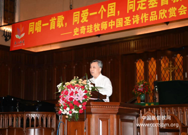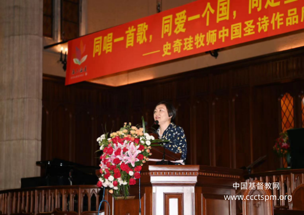 上海市基督教三自爱国运动委员会主席徐玉兰牧师在致辞中特别强调,活动当天是中国基督教发起三自爱国运动73周年纪念日,大家欢聚一堂共同见证走三自爱国道路是中国基督徒在中国特色社会主义社会中办好教会的明智抉择。她也列举了史奇珪牧师的一些中国圣诗作品,认为他为中国信徒在中华优秀传统文化和基督教信仰之间架起了一座桥梁,为圣诗中国化作出突出贡献。史牧师对中国圣诗的探索精神,为通过圣诗中国化来推进基督教扎根中华优秀文化沃土提供了宝贵经验和强大动力。